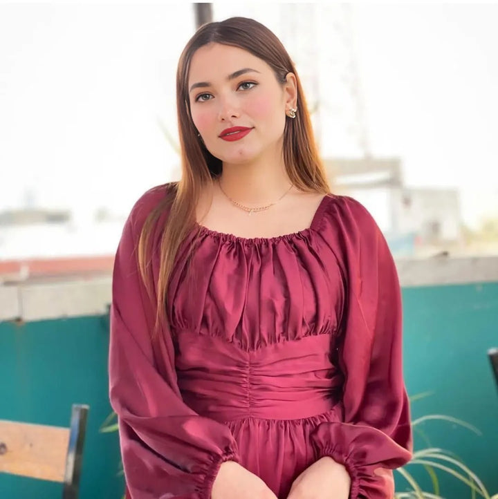 Step out in timeless elegance with this long-length women’s frock, beautifully crafted from luxurious shot silk in a rich maroon shade. Designed with a flattering silhouette and a graceful ruffled hem, this plain frock offers both style and sophistication for any occasion. With a shirt length of 52 inches and chest size of 21 inches, it ensures a comfortable yet polished fit. Available as a single piece, the package includes 1 x Frock.