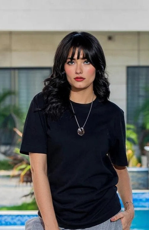 Classic Black Crew Neck T-Shirt – Women's Timeless Cotton Fit
